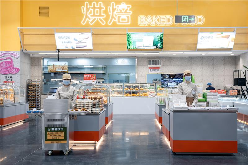 與未改造的永輝超市門店相比,世紀金源店改動不小。兼顧日常生鮮食品消費和節(jié)假日集中采購,是這家店呈現(xiàn)出得一大訴求。世紀金源店賣場布局更具空間感,烘焙、熟食、鮮肉、水果、蔬菜、水產、食品、百貨、酒飲、散裝零食等品類依次分布在賣場主動線上。精選出的近10000個SKU采用量販式陳列,使得整個賣場更像是一家倉儲店。永輝超市同時在賣場內設置了多個試吃點,日常為消費者提供主推單品試吃試飲,吸引其購買。其中鮮食加工區(qū)、生鮮區(qū)是兩個主力區(qū)域,承擔了提升差異化,培養(yǎng)顧客粘性的職能。鮮食加工涵蓋烘焙、熟食、餐飲等品類。永輝超市一方面借鑒引入了榴蓮千層、烤雞等網紅商品,給沒有接觸過會員店、但又能夠從小紅書等社交網絡平臺上了解到相關網紅品的消費者提前體驗。另一方面, 永輝超市也聯(lián)合當?shù)毓蹋霞芰擞袡C鮮花餅、甜皮鴨等區(qū)域特色商品。其中烘焙品類是永輝超市重點發(fā)力的增長品類。《第三只眼看零售》認為,這也是零售企業(yè)發(fā)力產品差異化,向制造型零售商靠攏的機會品類。因為烘焙消費的場景邊界正在模糊,逐漸從節(jié)日、紀念日滲透進人們日常生活中的零食、正餐。在此背景下,零售商提供購買方便、品類齊全的烘焙產品,培養(yǎng)了消費者“隨手帶”一份烘焙商品、隨吃隨買的習慣。而且,相比較烘焙專業(yè)店來說,零售賣場的烘焙品類更具性價比。生鮮品類是永輝超市的強項。結合產地倉優(yōu)勢后,世紀金源店進一步強化其新鮮感。例如門店內設置的步入式生鮮冷藏區(qū),具有兩個功能。一是陳列有100個左右的蔬菜單品,讓對新鮮程度要求最高的蔬菜保持穩(wěn)定低溫,以此減少損耗;二是發(fā)揮暫儲功能。例如預估銷量較大的賣場堆頭陳列生鮮品等即可暫存在冷藏區(qū)內,方便門店隨時補貨。《第三只眼看零售》注意到,世紀金源店內的生鮮品類均為預包裝銷售。其中超90%商品由永輝云南產地倉的加工倉自主完成,多重保障嚴控食品安全。而且,店中設有獨立肉品加工間,可以實現(xiàn)肉禽類產品冷藏、冷凍雙位一體,并能根據消費者需求實現(xiàn)現(xiàn)場切割。“生鮮品牌化能為商品帶來更可觀的附加值,例如產品生產標準化、更多溢價空間、原材料、品質保障、縮短消費者選擇路徑等。實際上現(xiàn)在不少零售企業(yè)也在著力推動自有品牌建設,并從低價賣點階段發(fā)展到高品質、性價比階段。”凱度消費者指數(shù)大中華區(qū)總經理虞堅曾對《第三只眼看零售》分析稱。生鮮標品化程度提升后,也有利于企業(yè)做到線上線下每一個生鮮單品同條碼、同價格、同品質,從而迎合線上線下一體化運營需求。例如世紀金源店即可通過“自有渠道+第三方渠道”為消費者提供線上最遠20公里半徑內配送、最快30分鐘送達服務。此外,圍繞“全球+全國+本地”的垂直供應鏈,永輝結合當前消費趨勢及當?shù)叵M偏好,幾乎在每個產品類目中都打造出了“進口+全國+云南特色”的商品結構。就拿生鮮產品來說,永輝云南旗艦店引入了來自新西蘭的牛羊肉、進口龍蝦、帝王蟹等優(yōu)質進口生鮮產品,來自全國各優(yōu)質產區(qū)的新鮮蔬果,也增加了具有本地特色的云南火腿、牛干巴、天麻等地域農副生鮮產品,最大程度滿足不同消費者需求。